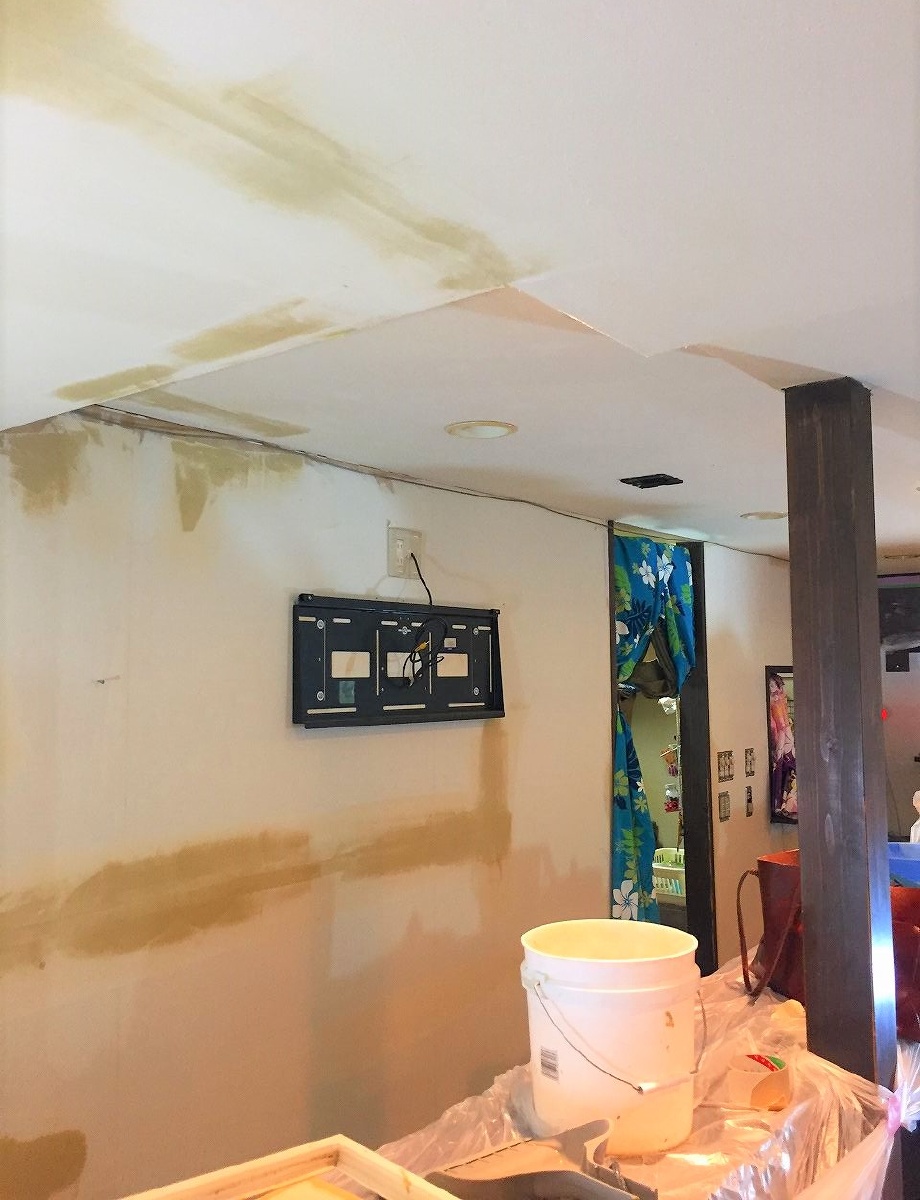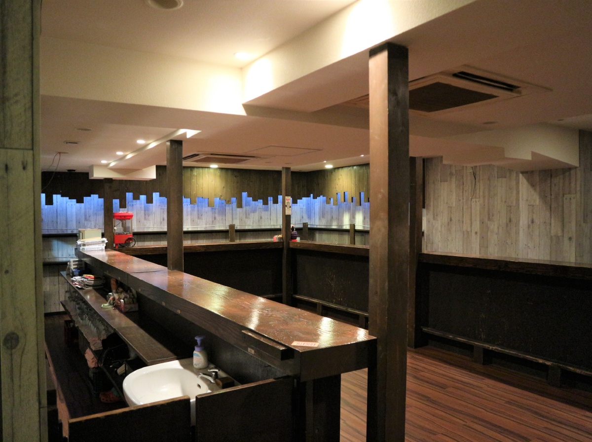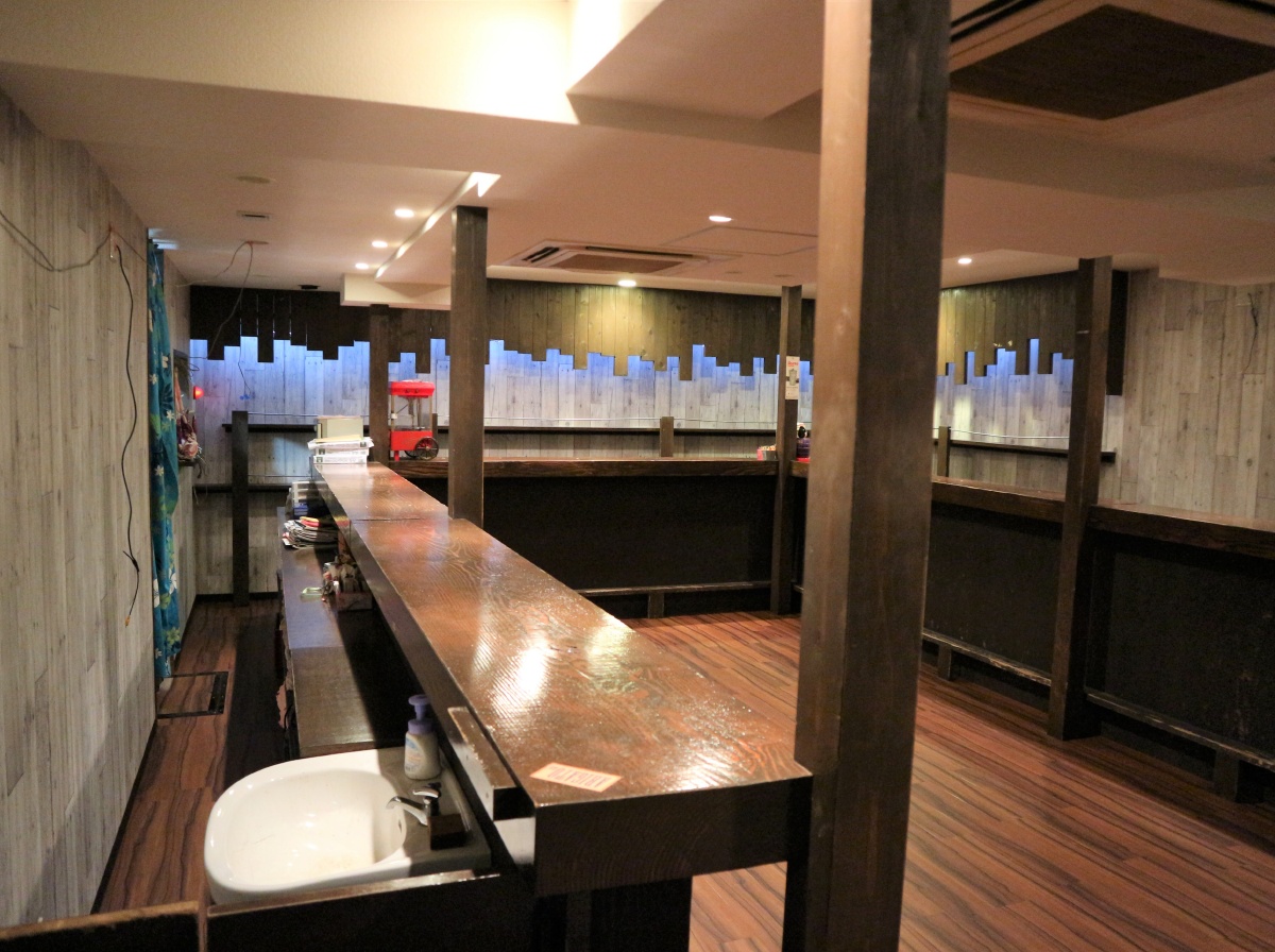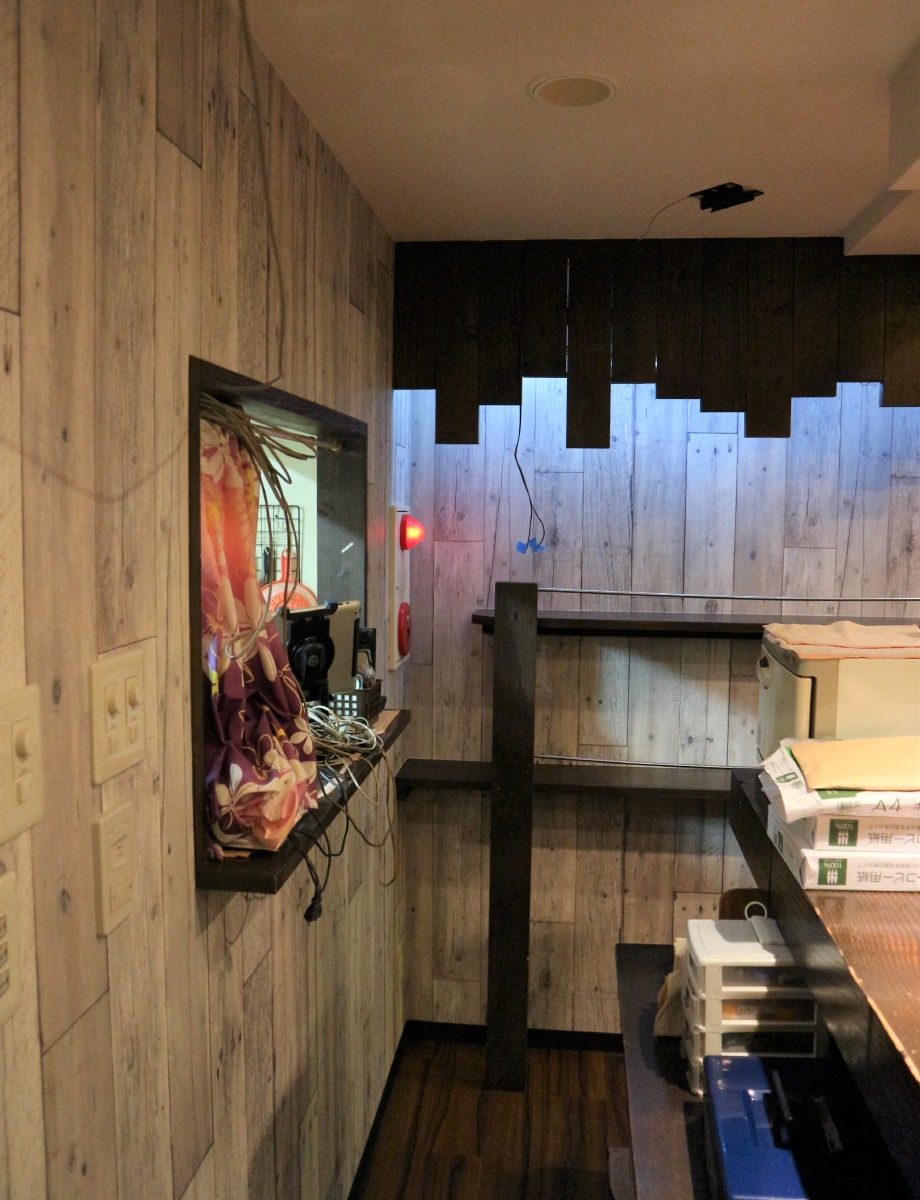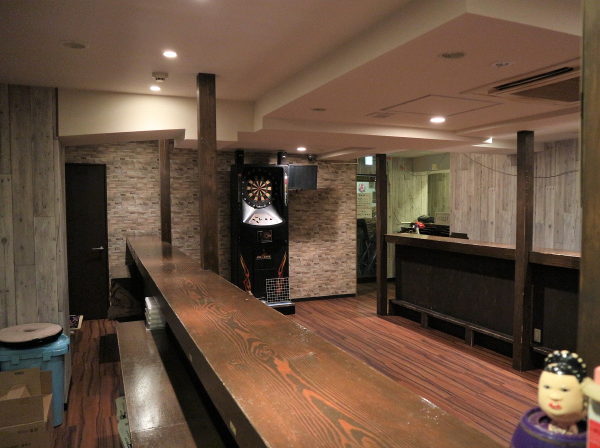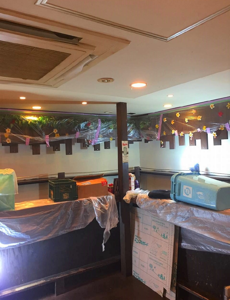 店舗内装改修工事をさせて頂きました。天井・梁・壁クロス張替・床塩ビタイル貼施工。
