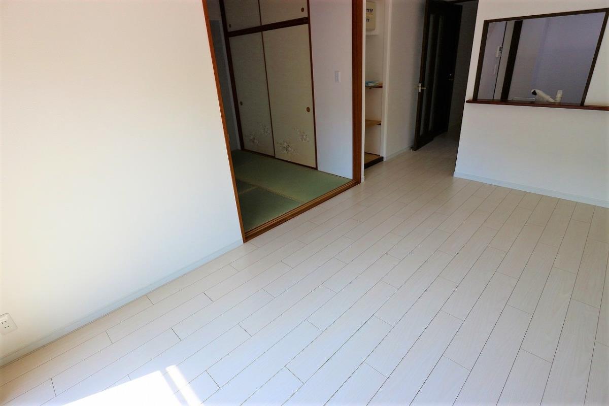 上記は、施工前写真になります。費用削減の為、既存床に上張りでフローリングを仕上げております。完成をご覧下さい!!!