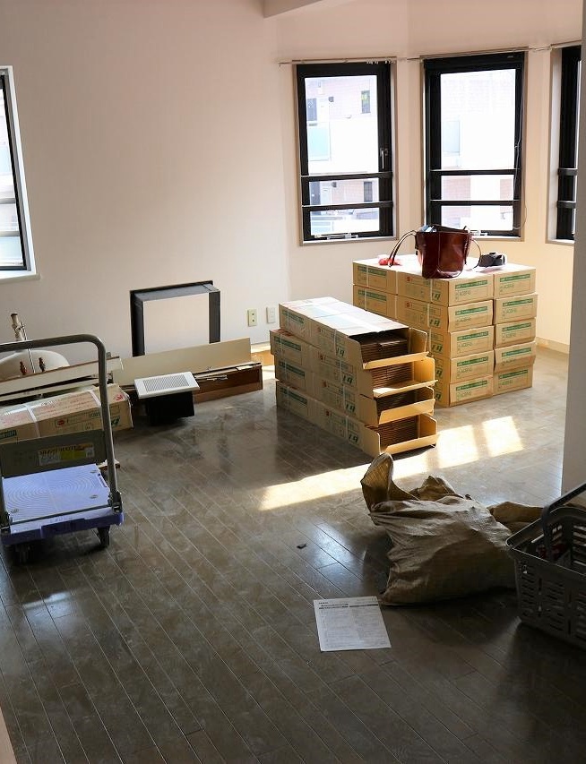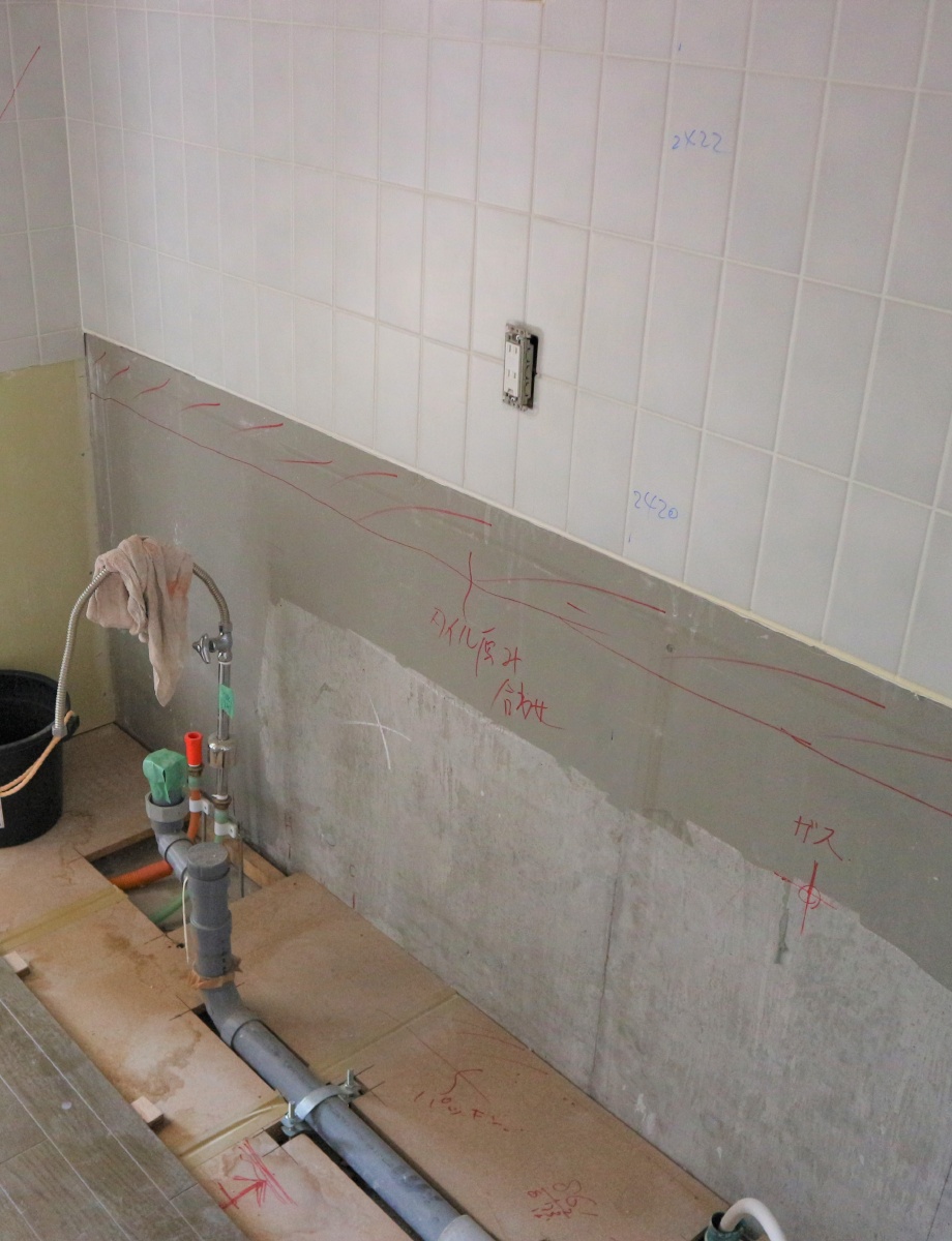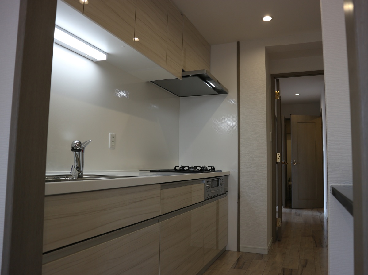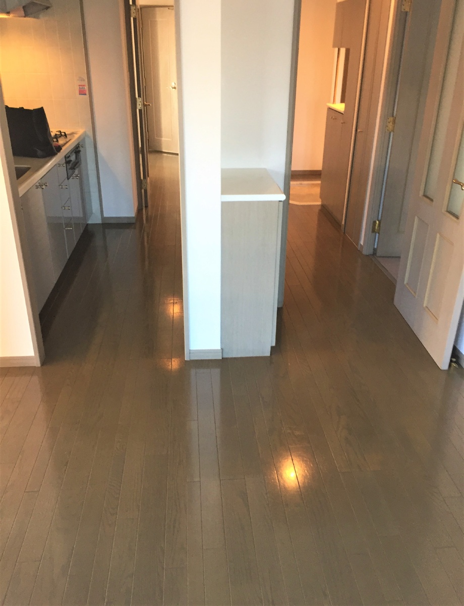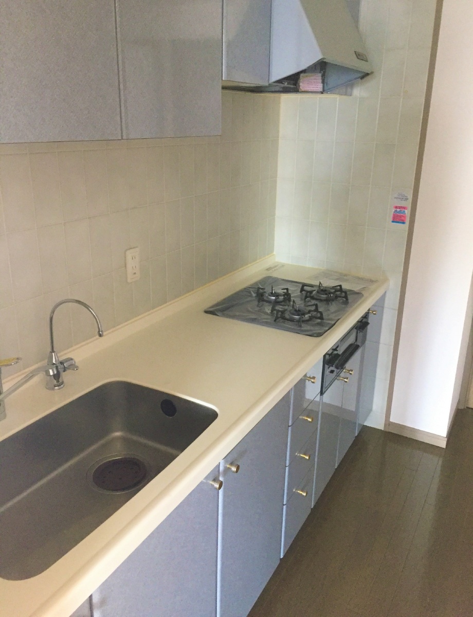 工事内容:全室フローリング貼り・洗面化粧台交換・システムキッチン交換・ユニットバス交換・洗濯パン交換・洗濯水栓交換・洗面室クロス張替・トイレクロス張替