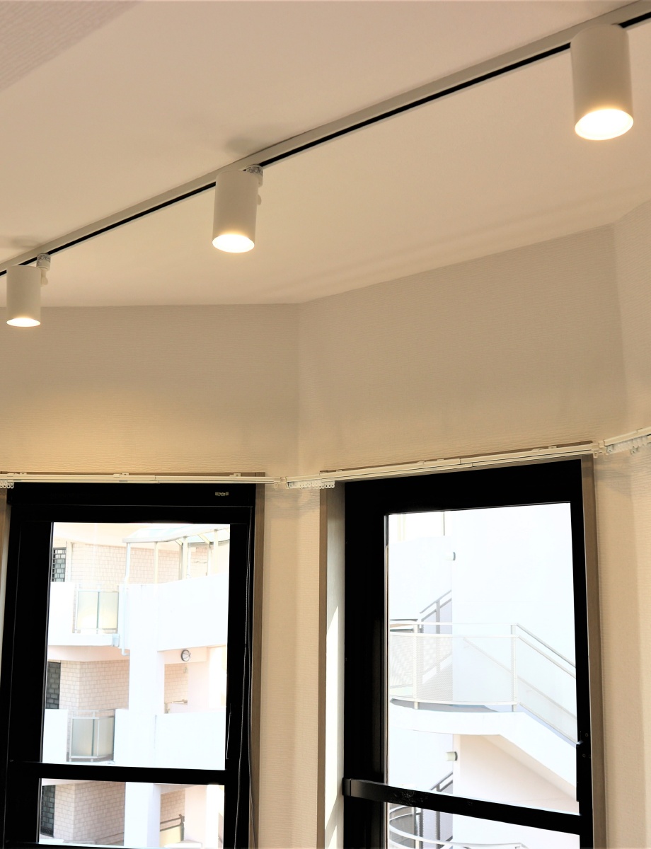 ライティングレール設置させて頂き、間接照明でおしゃれな空間になっております。グレー色で落ち着いた、お部屋になっております。