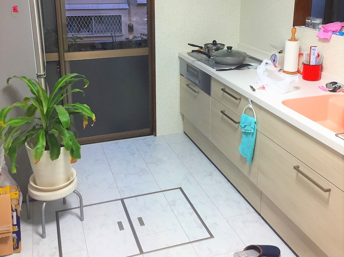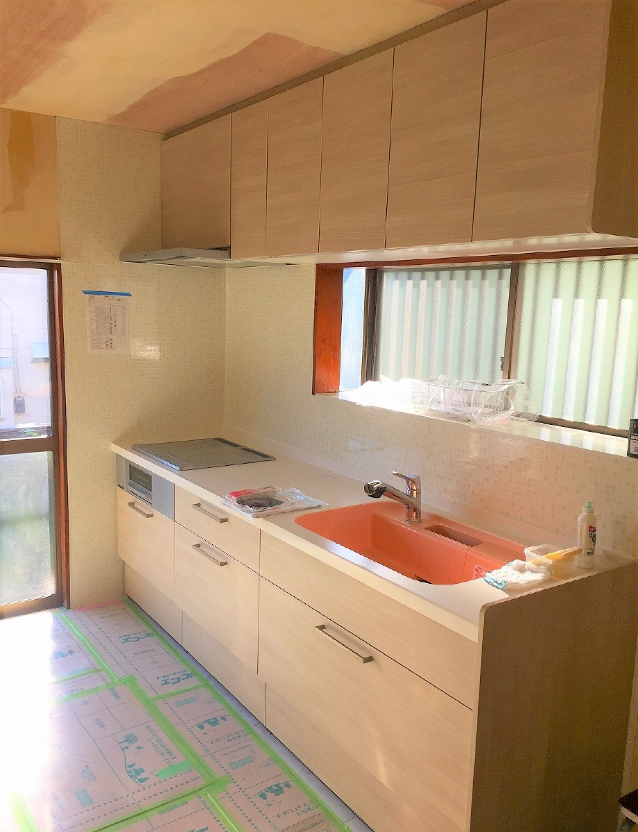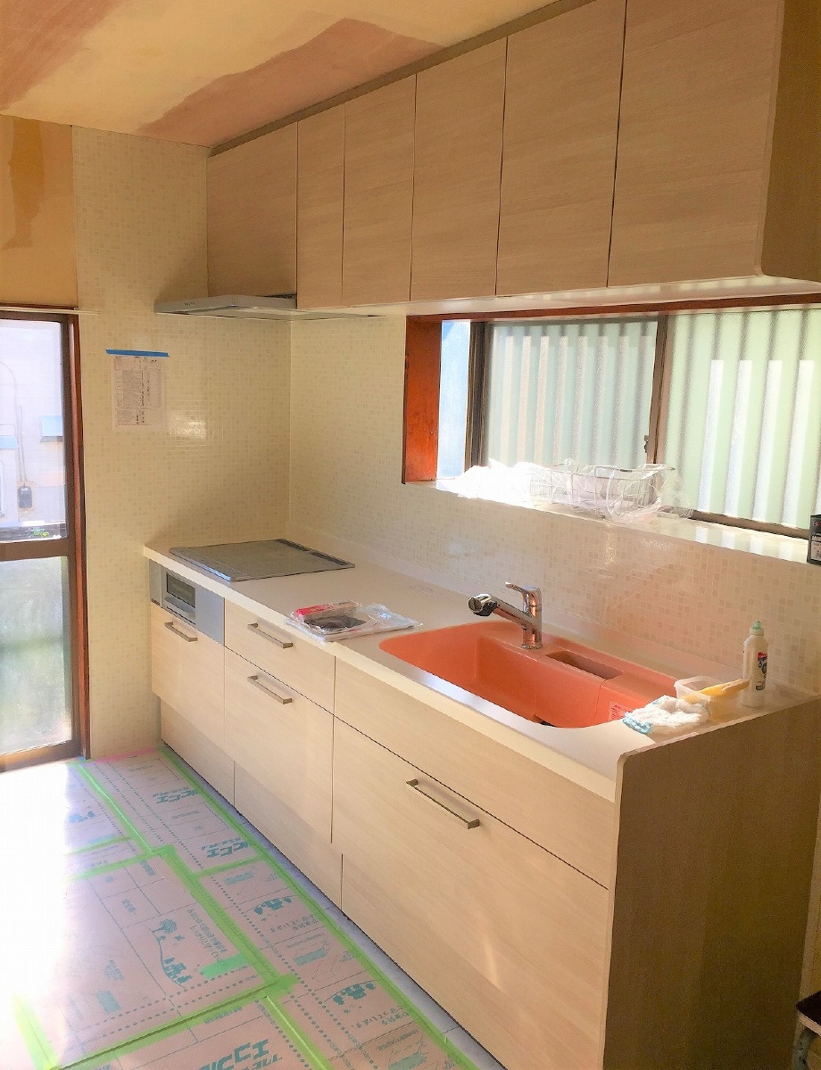 工事内容:LIXILアレスタシステムキッチン・LIXIL床フローリング・床収納新設・内装クロス仕上げ