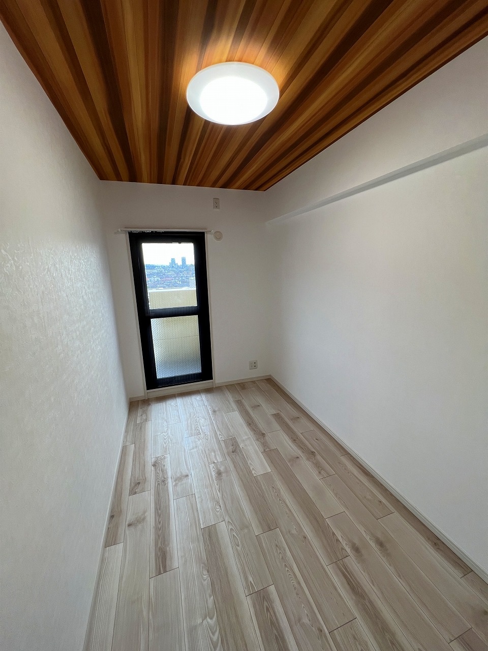 マンションのリフォームを行いました。白を基調としたお部屋に木目の天井が印象的です。暖かみのある素敵なお部屋になりました。